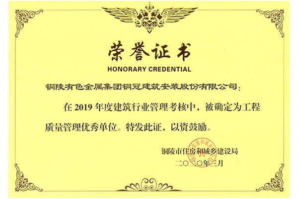 • 工程質(zhì)量管理優(yōu)秀單位